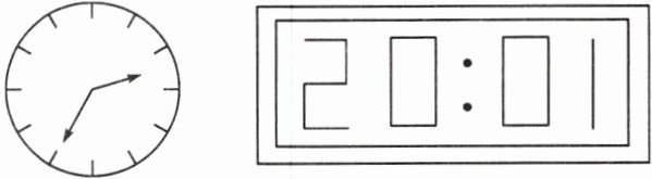 10. 小明从平面镜里看到镜子对面石英挂钟和电子钟所成的像如图所示,这时石英挂钟和电子钟显示的时间分别是