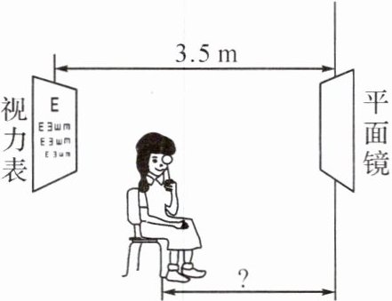 8. 视力检测时要求被测的人与视力表的距离为$5m$。如图所示,视力表与平面镜的距离是$3.5m$,为满足检测要求,人与平面镜的距离应为(