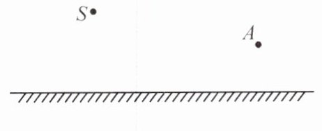 11. (2024·绥化)请根据平面镜成像特点,作出点光源$S$发出的光经平面镜反射后通过$A$点的光路图(保留作图痕迹)。