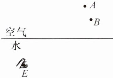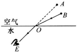 (填“A”或“B”)点是像所在的位置,在图中画出水下E处的潜水员看到路灯的光路图。