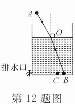 12. 如图,一束光从A点射向水面上的O点,照射到容器底部的B点,如果要让折射光线射到C点,应保持入射点不变,