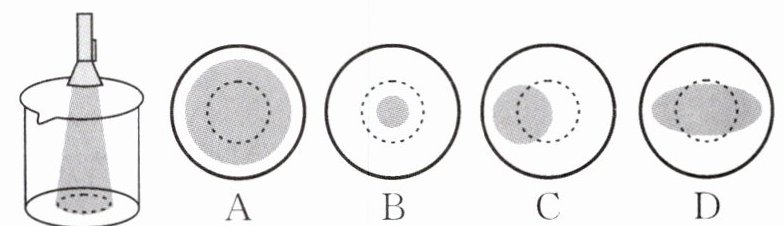 11. 如图所示,一束光照射到一个空的烧杯的底部,形成的光圈用虚线表示,若往烧杯中注满水,烧杯底部的光圈会变为(