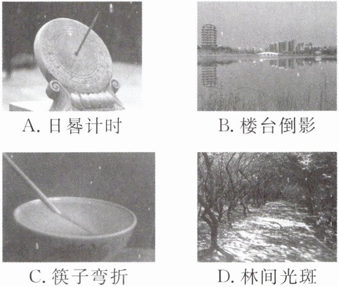2. (2024·陕西)中国古诗词不仅文字优美、意境高远,还蕴含着丰富的科学知识。下列四幅图与诗句“掬水月在手,弄花香满衣”中所涉及的光现象相同的是(