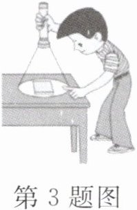 3. 晚上,在桌面上铺一张白纸,把一块小平面镜平放在白纸上,让手电筒的光正对着平面镜和白纸照射,如图所示,从侧面看去(
