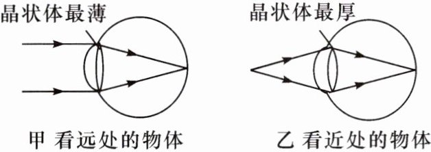 到凸透镜的距离不变,图中甲、乙分别是人眼观察远处和近处时晶状体的情况,分析可知,当人眼在观察物体时,物体由远处向人靠近时,晶状体厚度变厚