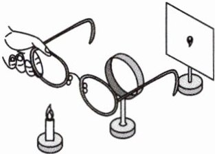 5. 在模拟近视眼的实验中,将蜡烛放在离凸透镜较远的位置,如图所示,给凸透镜“戴”上近视眼镜,此时光屏上能成一清晰的像;若拿走近视眼镜,则烛焰的像变得模糊。在拿走近视眼镜后,为了能在光屏上重新得到清晰的像,下列操作中,可行的是(