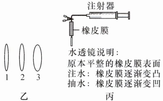 (3)用如图丙所示的水透镜模拟远视眼矫正过程。应将水透镜置于光具座上的
