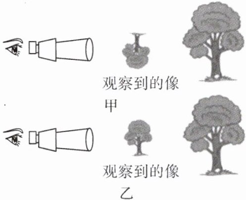 。3. 图甲、乙是小明所在的小组和另一个小组分别用所做的望远镜观察远处同一个物体的示意图。若要用这两组同学制作的望远镜观看足球比赛,你建议用图