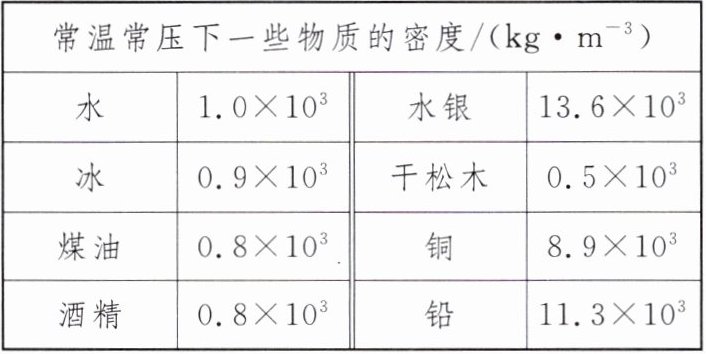 6. 人大附中校本经典题 观察密度表中的数据,下列相关说法中正确的是(