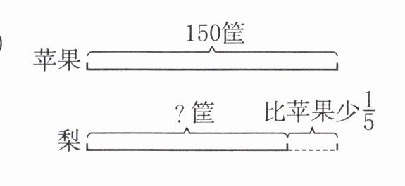 解析:本题考查分数乘法的应用。把苹果的筐数看作单位“1”,梨比苹果少$\frac{1}{5}$,那么梨的筐数是苹果的$1 - \frac{1}{5}=\frac{4}{5}$,已知苹果有150筐,求梨的筐数,就是求150的$\frac{4}{5}$是多少,用乘法计算。