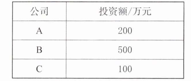 首先计算三家公司投资额总和:$200 + 500 + 100=800$(万元)