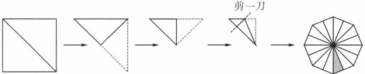 展开后可得到一个中心对称的多边形。继续不停地对折并剪一刀,展开后的图形会越来越接近圆形。