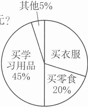 (1) 由图可知买衣服占总花费的比例为:1 - 45% - 20% - 5% = 30%