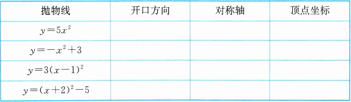 1. 写出下列抛物线的开口方向、对称轴和顶点坐标.
