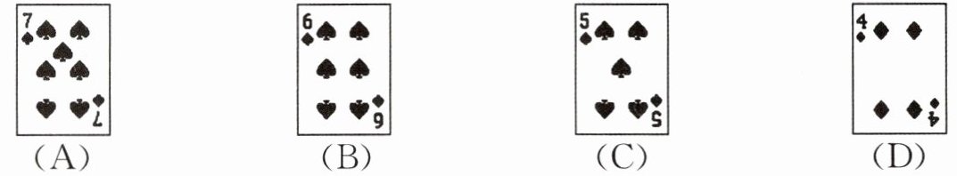 1. 下面四张扑克牌中,绕中心顺时针旋转180°后还和原来一样的是(