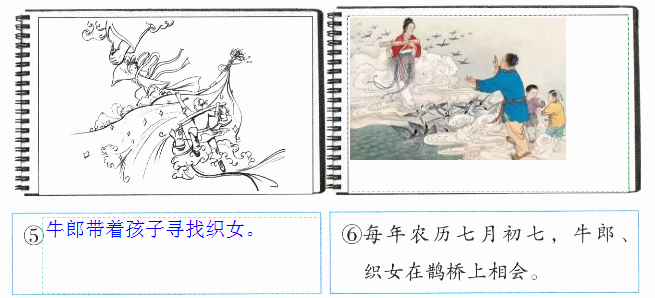 ⑥每年农历七月初七,牛郎、织女在鹊桥上相会。