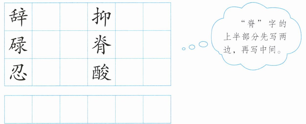 题目考查汉字书写规范,要求将给定汉字正确、端正地书写在田字格中,同时根据提示掌握“脊”字的笔顺书写规则。解题关键在于熟悉汉字结构,按照正确笔顺书写,保证字迹工整、布局合理。