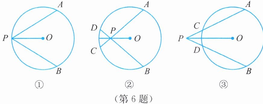 6. (1)如图①,过$\odot O上一点P作两条弦PA$,$PB$.若$PA= PB$,则$PO平分\angle APB$.为什么?