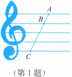 1. 如图,五线谱是由等距离、等长度的五条平行横线组成的,同一条直线上的三个点A,B,C都在横线上. 若线段AB= 1 cm,则线段BC=