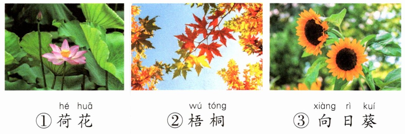 第四小题,我们需要识别不同植物的生长环境。根据常识和科学知识,我们可以知道荷花是生长在水中的植物,而梧桐和向日葵则是生长在陆地上的植物。