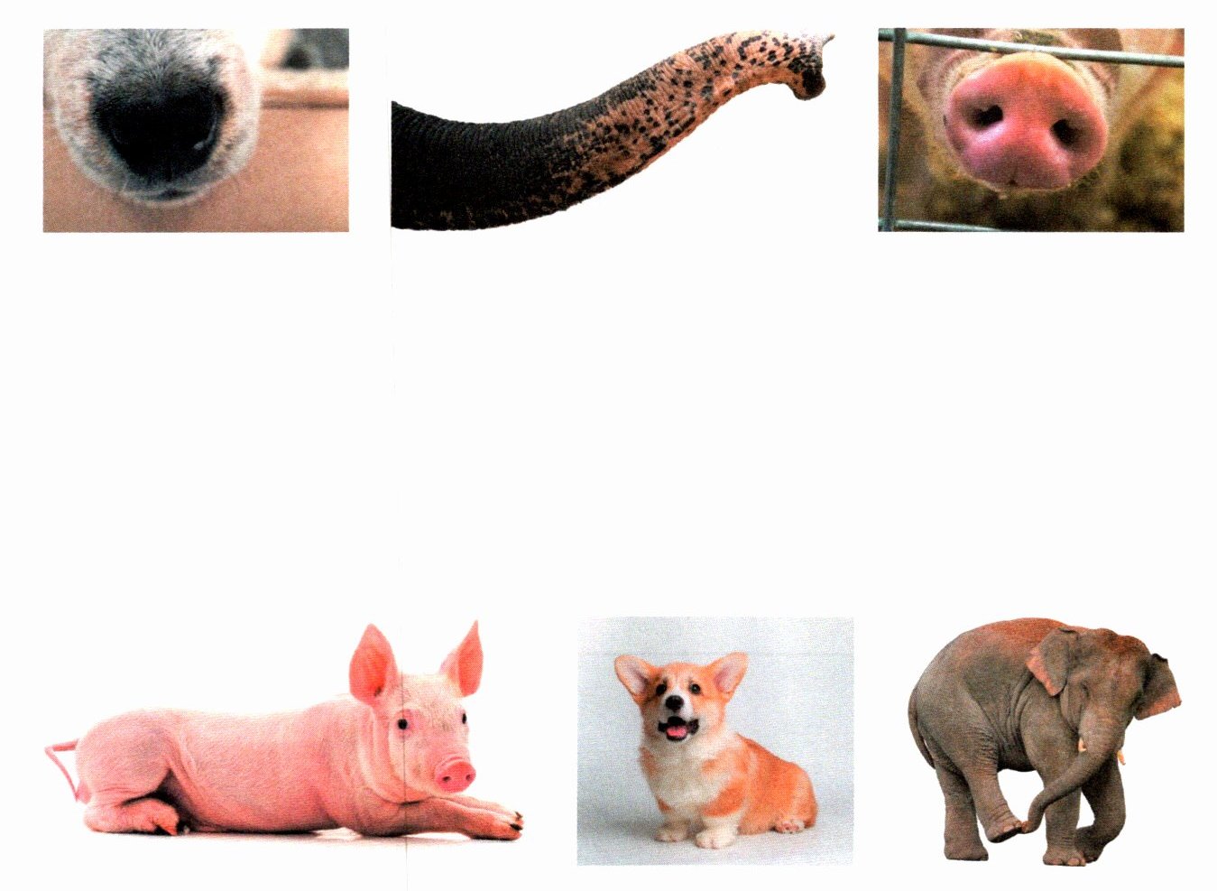 连一连:将动物与它们的鼻子用线连起来。
