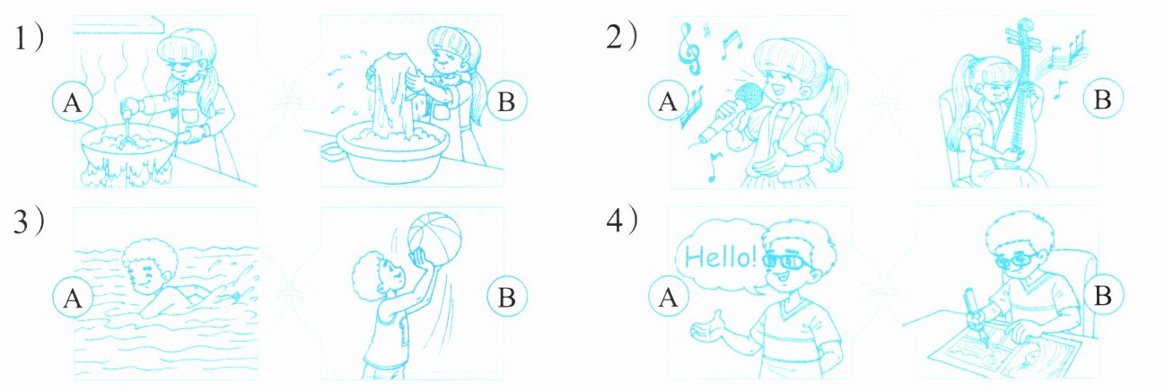 这是一道英语题目,来源于人教版五年级上册的Unit 4,主题是"What can you do?"。根据题目“Read and write”可以判断题型为阅读理解填空或者写作题,需要学生阅读一段文本,然后基于文本内容完成相关的填空或者书写任务。这类题目主要考查学生的阅读理解能力、词汇运用能力和书写能力。