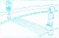 这句话的意思是“灯是红色的!请等待。”根据交通规则,红灯时应该等待,所以这里填入wait。