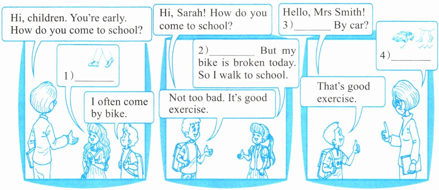 )4) Usually Oliver comes to school by bus. (