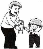 B. —This toy robot is for you, Jimmy. —Thanks.