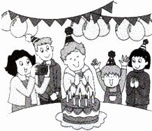 3. 第三幅图片展示了一个生日聚会的场景,有蛋糕、彩旗等,E选项“We have a family get - together on my birthday.”描述的是生日时的家庭聚会,符合图片情境。