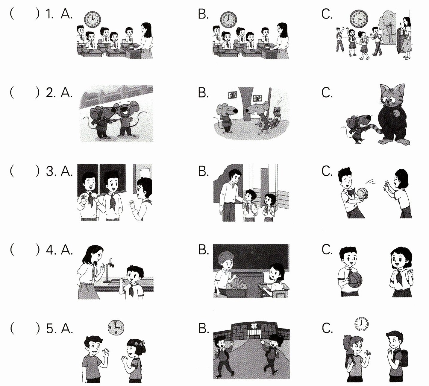 1. B;2. C;3. B;4. A;5. A