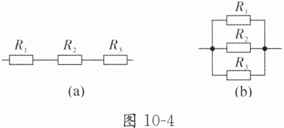 (2)并联电路:把几个导体(用电器)的一端连在一起,另一端连在一起,再将两端接入电路的连接方式,如图 10 - 4(b)所示.