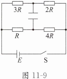 11. (2023·海南卷) 如图 11-9 所示电路, 已知电源电动势为 $ E $, 内阻不计, 电容器电容为 $ C $, 闭合开关 $ \mathrm{S} $, 待电路稳定后, 电容器上的电荷量为 (