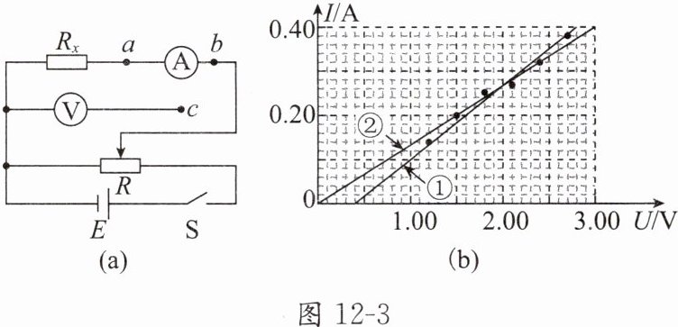 $R_{x}$的真实值.(2)根据实验测得的6组数据,在图12-3(b)中描点,作出了两条图线.你认为正确的是