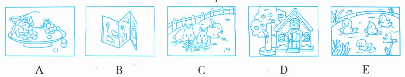 1. B; this, map 2. E; see, five 3. A; like, grapes 4. D; kind, apple