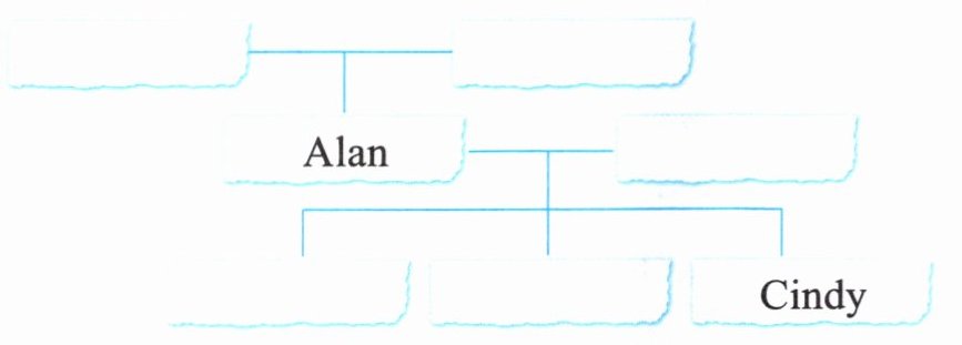 Ⅲ. Complete the conversation and answer the questions. Then finish Cindy’s family tree. 补全对话并回答问题,然后完成 Cindy 的家谱。