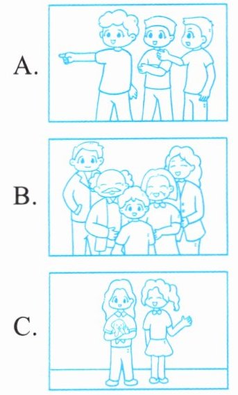 1. B, He, grandparents 2. C, sisters, His 3. A, Those, friend