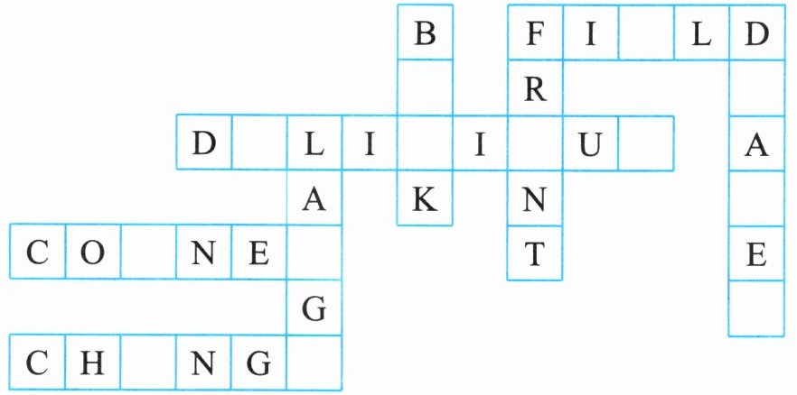 Ⅰ. Across (from the top): 1. field 2. delicious 3. corner 4. change