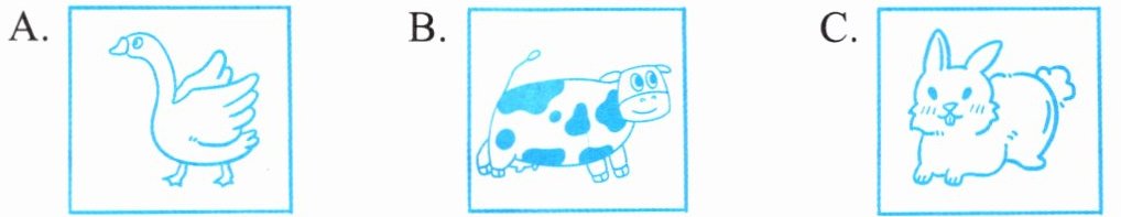 )9. What animals are on the farm?A. Sheep. B. Geese. C. Rabbits.