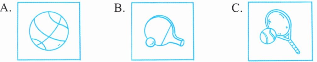 )6. What is under the sofa?A. A tennis bat. B. A tennis ball. C. A cap.