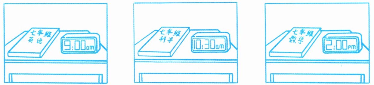 B: We have Chinese at 8 o'clock. We have ______ at 9 o'clock. At 10 o'clock, we have a rest.