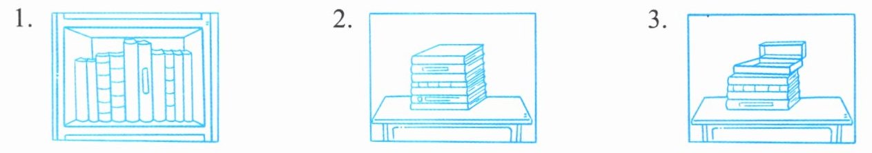 Ⅰ. Look at the pictures and use the right prepositions to describe where Mary’s books are. 看图片,运用恰当的介词描述Mary的书所在的位置。