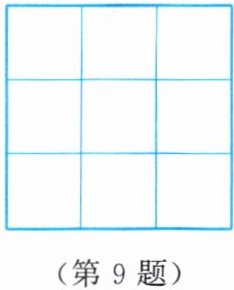 9. 将-4,-3,-2,-1,0,1,2,3,4这九个数分别填入图中幻方的九个空格中,使得处于同一横行、同一竖列、同一斜对角线上的三个数相加都得0。
