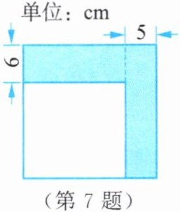 7. 如图,小刚将一个正方形纸片剪去一个宽为5 cm的长方形纸条后,再从剩下的长方形纸片上剪去一个宽为6 cm的长方形纸条,且两次剪下的长方形纸条的面积正好相等。如果设正方形的边长为x(cm),则可列方程: