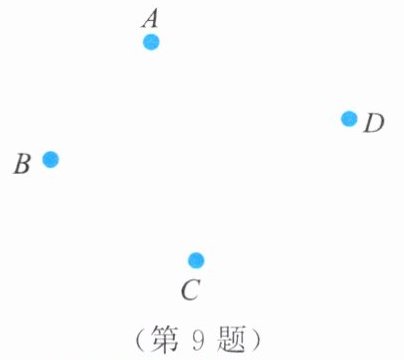 9. 如图,有A,B,C,D四个村庄,现准备修建一个蓄水池。在图中画出蓄水池H的位置,使它与四个村庄的距离之和最小,并说明理由。