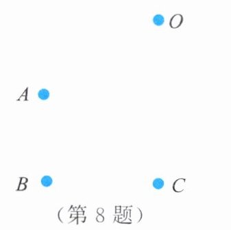 8. 如图,点A,B,C表示某村庄同一水平面内的三幢房子,村民在区域角落点O处安置了一个垃圾投放点。哪一幢房子距离垃圾投放点最近?请你作出判断,并用圆规进行检验。