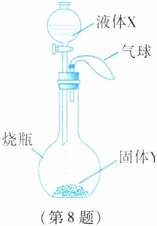 8. 如图所示,将一定量的液体X滴入烧瓶中,若使小气球鼓起(液体X的体积忽略不计),则液体X和固体Y不可能是(