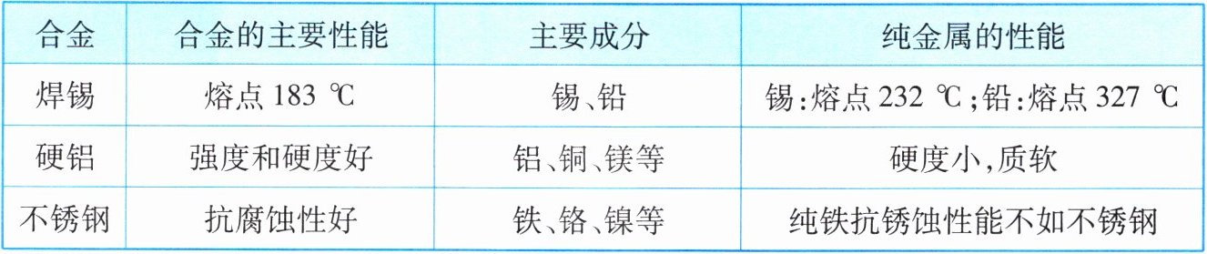 8. 日常使用的金属材料多数属于合金。下表列出了一些常见合金的主要成分和性能。