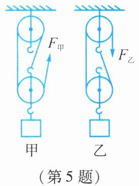 5. 如图所示,用甲、乙两滑轮组匀速向上提升重物,物重都为600牛,不计动滑轮重及摩擦,绳子的拉力$F_甲$为