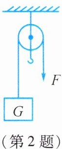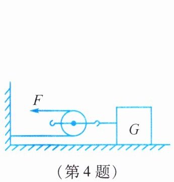 4. 如图所示,物体G在水平拉力作用下向左匀速运动了0.3米,物体G受到的摩擦力为2牛,不计滑轮和绳子之间的摩擦,则拉力F的大小为